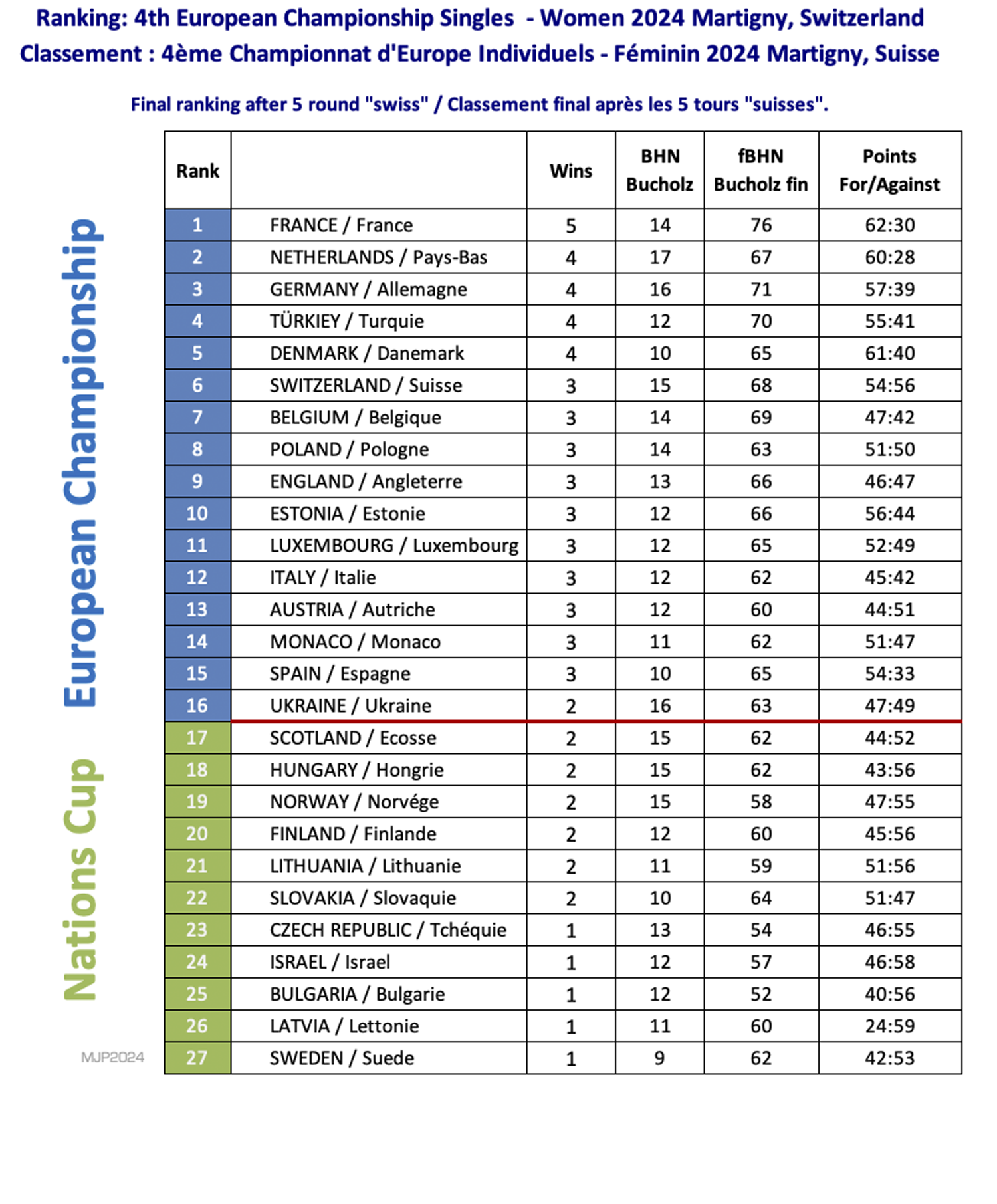 4ÈME CHAMPIONNAT D'EUROPE INDIVIDUEL 2024